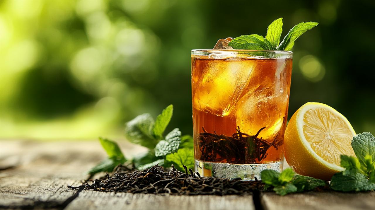 Au-delà du thé lui-même, les accompagnements transforment une simple infusion en véritable création gustative. Les agrumes occupent une place de choix dans cette catégorie, le citron étant particulièrement prisé pour son acidité rafraîchissante qui équilibre la douceur du sucre. Les rondelles de citron apportent également une dimension visuelle attrayante lorsqu'elles flottent dans la carafe. La menthe fraîche constitue un autre ingrédient incontournable, capable d'apporter une fraîcheur incomparable à votre préparation, comme en témoignent les recettes de mojito aux bleuets ou de thé glacé à la pêche qui figurent parmi les boissons les plus populaires. Pour sucrer naturellement votre boisson, le sirop simple reste la solution la plus pratique car il se dissout parfaitement même dans un liquide froid, contrairement au sucre cristallisé. Les fruits rouges tels que les fraises, les framboises ou les bleuets enrichissent la boisson de leurs antioxydants tout en créant des associations gustatives surprenantes. Certains préféreront ajouter des épices comme la cannelle, le gingembre ou le curcuma pour créer des versions plus exotiques et bénéficier de leurs propriétés anti-inflammatoires naturelles.